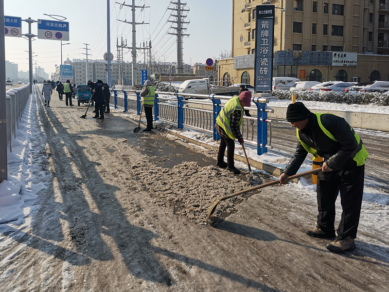 2月4日至5日期间,全市出现连续降雪、寒潮天气,给群众的日常出行带来很大不便。兴滕公司积极响应市委市政府号召,第一时间组织党员干部职工到平行路进行扫雪除冰,以实际行动践行“我为群众办实事”。 在现场,大家不畏严寒、齐心协力,携带铁锨、雪铲等工具迅速投入到破冰除雪活动中,同时安排多台铲车上路清