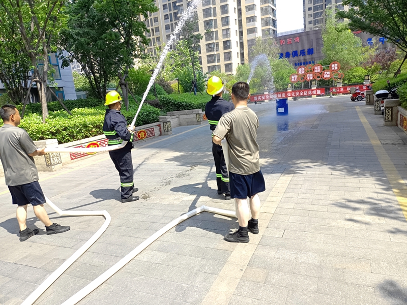 6月17日,为贯彻落实好集团公司安全生产月工作要求,人和蓝湾小区开展消防安全主题活动。人和商管公司、安全品控部和山东祥泰物业公司相关负责人参加。 活动当天,物业消防负责人员向详细讲解了灭火器、消防栓及消防水带等器材的使用方法,组织开展了火情处置消防演练,并在小区发放安全宣传单,切实让全体物业